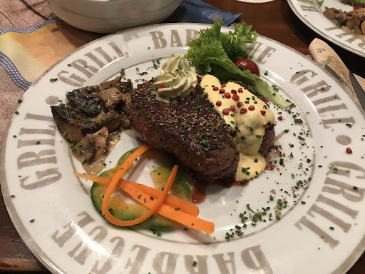 I had mine with boiled potato, my husband got a baked potato, equally good . The steaks came with openbar salad. The choice of salad might not seems a lot, but it is really sufficient to mix your own German salad plate.