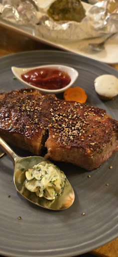 Wir hatten den Zwiebelrostbraten mit Spätzle (selbstgemacht), Schweinemedaillons in Pfeffer-cognac Sauce mit selbstgemachten Spätzle sowie Spätzle mit Rahmsosse für unseren Junior. Der Rostbraten war genau auf den Punkt gebraten medium und mit den Spätzlen eine wahre Wonne. Leider ohne Salat und zum Preis von 22,50 Euro schon recht teuer.