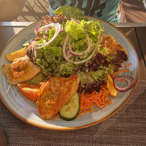 Read moreEin sehr schöner Ort zum Verweilen mit toller Außenterrasse und schattenspendenden Bäumen. Auch ist das Restaurant gut zu finden und hat ausreichend Parkplätze. Drei Sterne gibt es von mir allerdings wegen des Essens, das, für das, was es geboten hat, recht kostspielig war. Ich war das erste Mal dort und bestellte Cevapcici. Optisch war es an sich ansprechend gerichtet aber die Cevapcici waren schwach angebraten und das nicht nur von meiner Bestellung, wenig gewürzt und das Fleisch geschmacklich wenig ansprechend (nur auf die Cevapcici bezogen, anderes habe ich nicht probiert). Auf unseren Hinweis, doch ein wenig mehr zu würzen, sagte man uns nur, wir könnten selbst zuwürzen. Nur, wenn es vorher schon schlapp ist, bringt das Draufwürzen auch kaum etwas. Der Salat dazu war schön angerichtet, allerdings fast nur in ganzen Blättern, die erst geschnitten werden mußten, die Salatsoße mäßig. Auch bekam ich ständig das falsche Essen oder Getränk hingestellt. Vielleicht haben wir alle nicht den besten Tag getroffen aber eine schöne Anlage allein reicht mir nicht. Geschmäcker sind verschieden oder meine...
