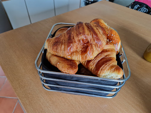 Da habe ich ja wohl die Ferienaushilfe, einen jungen Mann erwischt ( Sonntag 18.08.24). Eigentlich sind die Backwaren ja ok. An die Croissants wie in Frankreich kommen sie nicht ran, aber der Weg ist halt auch weit. Wer aber kommt auf die Idee bei einer Bestellung von 4 Buttercroissants, 2 Körnerbrötchen und 2 Brezeln diese in genau dieser Reihenfolge in eine Tüte zu packen. So sahen die Croissants dann auch aus, garniert mit einer Nuance Salz der Brezeln - wie man sie sicher auf dem fremden Stern des...