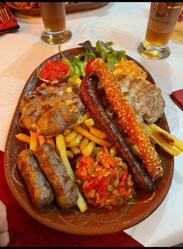 Das Essen? Einfach großartig! Vorspeisen wie die hausgemachten landestypischen Aufstriche oder Die Champignons gefüllt mit Schafkäse nur um 2 zu nennen, ein Traum! Die Fleischgerichte wie Cevapcici und die hausgemachte Bratwurst sind ein absoluter Genuss. Man schmeckt die Qualität des frischen Fleisches und die Aromen des Grills bei jedem Bissen. Auch die Beilagen – ob knusprige Pommes oder rustikale Kartoffelecken – sind großzügig portioniert und perfekt abgeschmeckt. Besonders hervorzuheben ist das hausgemachte Brot – warm, fluffig und voller Geschmack. Alles wird mit frischen Zutaten zubereitet, was man bei jedem Gericht merkt.