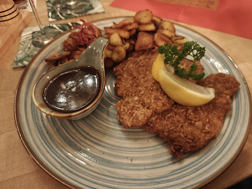 Read moreNice place to eat. We entered at 20.00. we got really nice schnitzels, and the kids got nice chicken nuggets with pommes from the children's menu. The serving was fine (the one who took orders, was smiling and sweet, but the one who came with the food, looked more like she didn't want to be there) - the kitchen closes at 9, so we could not order desserts, because we were done with our main dish a little after 9, but they were sweet enough to make a couple of ice cream desserts for the kids. We ordered coffee for the adults but felt a bit unwanted, especially when's they started to put chairs up on the other tables around us about an hour...