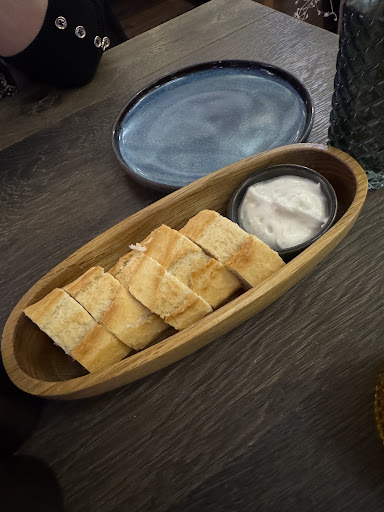 An diesem Abend gab es ein Tagesgericht – Lammrücken mit Polenta-Creme und wildem Brokkoli. Meine Begleitung entschied sich dafür, während ich das Ossobuco von der Lammhaxe mit Kartoffel-Sellerie-Püree wählte. Als Gruß aus der Küche wurde uns ein Baguette mit einer Knoblauchcreme serviert. Geschmacklich war die Creme sehr gut, doch das Brot selbst konnte leider nicht mithalten. Es war von minderer Qualität und so weich, dass es sich beim Zusammendrücken kaum wieder in Form brachte. Ein knusprig geröstetes oder hochwertigeres Brot hätte hier einen besseren Eindruck hinterlassen.