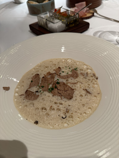 Read moreDas Ambiente ist wirklich sehr schön. Vorspeise (Trüffelrisotto) sowie die Brote/Aufstriche wirklich Weltklasse. 10/10. Meine Hauptspeise war sehr gut, der Fisch (Regenbogenforelle) meiner Begleitung war leider zu roh. Lustigerweise bekamen wir mit, wie zwei bis drei weitere Tische (scheinbar Stammgaeste), sich über genau das gleiche beschwerten, und sagten dass der Fisch heute nicht so wie gewohnt ist. Service großenteils sehr nett, gerade die beiden Italiener. Eine Sache die mir auffiel: Als wir nach einem weiteren Glas Weißwein fragten, schenkte einer der Kellner wirklich extrem sparsam (gerade so 0,1 ML) ein, während der andere, beim zweiten Mal als wir fragten, super großzügig (mehr als 0,2 ML) nachschenkte, zum gleichen Preis versteht sich. Hier könnte man vielleicht...