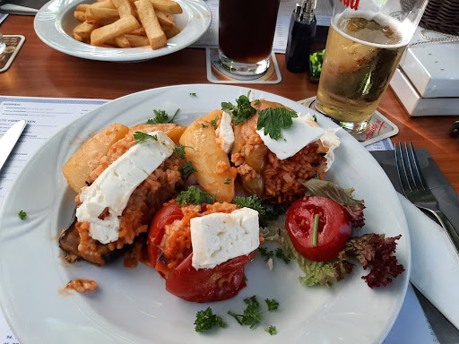 Read moreAls Veganer:in ist die Essensfindung ja angeblich ach so schwer..hier nicht, kurz nachgefragt und mir wurden natürlich Salate und zwei warme Gerichte vorgeschlagen, die ohne Käse vegan sind: gebackenes Gemüse aus dem Ofen mit Brot oder verschiedene Gemüsesorten, gefüllt mit Reis, dazu Kartoffeln und Beilagensalat mit sehr leckerem und würzigem Dressing. Das Essen kam schnell und die Portion war ordentlich 😋 das Ambiente ist auch sehr schön, mir persönlich fehlte nur die passende Musik ein wenig, aber vielleicht war sie für meine Ohren auch einfach nur zu leise 😁 Dass andere Gastgruppen gerne Witze über einzelne Personen machen und entsetzt starren, kenne ich schon, also, versuch's...