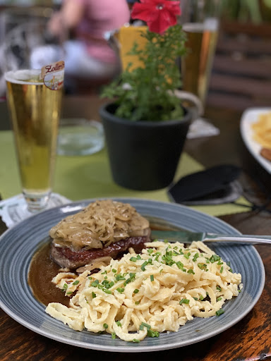 Read moreSuche gerade das Positive von dem Abend. Was ich absolut NICHT nachvollziehen kann, warum musste unsere Gruppe (~30 Personen) in das kleine Kämmerchen oben? Es war eng, warm und einfach nicht schön! Im Lokal selbst war fast nichts los und ausreichend Platz. Auch mussten wir schon vorher sagen was wir an diesem Abend essen möchten! So etwas sollte NICHT vom Betreiber als "Pflicht" verlangt werden. In dem Fall bestellte ich also "Kässpätzle mit Beilagensalat", einige andere ebenfalls. Ganz ehrlich, die schlechtesten Spätzle die ich je gegessen habe! Fade und geschmacklos, geröstete Zwiebeln aus der Dose & der Salat ein Hauch von Etwas. Für den absoluten ABZOCKERPREIS von 17,90 €!!!!! Das hat nichts mehr mit Inflation zu tun sondern ist ganz einfach VÖLLIGE SELBSTÜBERSCHÄTZUNG auf Kosten des Gastes. Abgesehen davon, haben es 3 Ober nicht geschafft uns mit "Know how" zu bedienen....alles sehr fragwürdig.