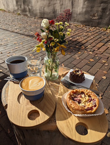 Read moreI stumbled upon this cute and funky cafe on my way to the city center and I held my breath noticing the sign advertising their roastery and the V60 and French press devices on display. The coffee plan did not work out to my satisfaction. The staff did not seem all that keen on indulging me with the preparation of a V60 or the likes. I ended up choosing some already made filtered coffee, which unfortunately had been sitting in the pot, on the heater for quite some time, therefore the taste was corrupted :( The good bit was the cappuccino, the delicious vegan cakes and the cute tables...