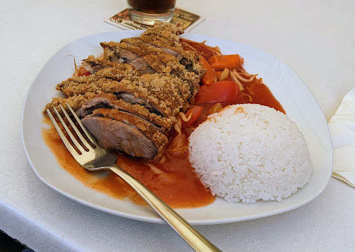 Read moreEinmal und nie wieder. Die Getränke waren warm und in klebrigen Gläsern.Wenn ich an einem heissen Sommertag essen gehe erwarte ich gekühlte Getränke. Das Essen war nicht sonderlich gut. Richtig null acht fufzig.Die gebratenen Nudeln fad und trocken und viel Gemüse war nicht mit drin.Die Ente war trocken.Als gesagt wurde das man den Rest mitnehmen wollte warf die Bedienung das restliche Essen von den anderen Tellern mit auf den Teller den man eigentlich mitnehmen wollte.Obwohl das ein ganz anderes Menü war.Und die Bedienung lies dann ewig auf sich warten zum zahlen. Quatschte lieber im inneren. Unser Fazit: Um eine Erfahrung reiche wo man nicht...