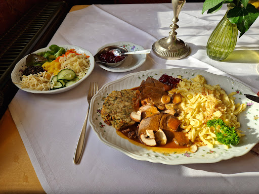 Read moreWir hatten unseren Tisch im Saal, der eiskalt war. Die Tür zum Gang stand immer offen und wurde von anderen immer wieder zugemacht. Ich habe der Bedienung gesagt, dass es kalt sei. Sie antwortete, sie hätte gerade aufgedreht. Es wurde nicht wärmer. Zwei Frauen haben sich ihre Mäntel angezogen. Also habe ich mir das nicht eingebildet. Außerdem wurde uns das Essen, bedingt durch die langen Wege von der Küche nur noch lauwarm serviert und kühlte durch die kalte Raumtemperatur natürlich gleich aus. Beim rausgehen durch die kleine Gaststube merkten wir, dass es dort deutlich wärmer und gemütlicher gewesen wäre. Meine Schwiegertochter ist schwanger und hat extra nach einem Rostbraten, der durchgebraten ist gefragt. Er wurde zwar als "durch" serviert, war es aber definitiv nicht. Ein No Go. Schade, denn vor 6 Jahren hatte ich eine sehr gute Bewertung abgeben können. Heute...