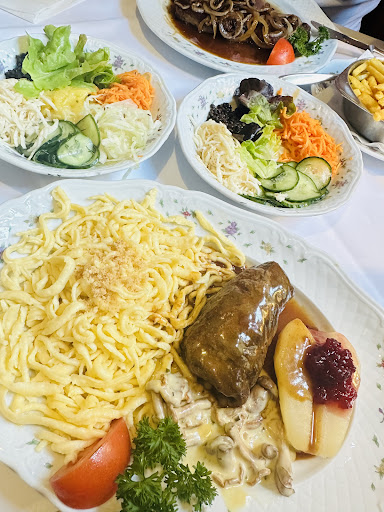 Read moreSolide deutsche Küche Das Positive zuerst. Die Portionen sind sehr reichlich, gespart wird hier nicht am Kunden. Auch geschmacklich war es absolut in Ordnung und ich würde jederzeit wieder hier essen gehen. Für eine bessere Bewertung fehlt mir aber der Wiedererkennungwert. Ich hatte den schwäbischen Sauerbraten, wie gesagt: Geschmacklich okay. Aber wie der Name schon sagt: Ein Sauerbraten ist im Normalfall sauer. Davon habe ich in diesem Fall nichts gemerkt. Hätte ich einen anderen Braten gewählt, wäre der wohl ähnlich sauer gewesen. Gar nicht. Die Spätzle wirkten auf mich selbsgemacht und waren hervorragend. Auch die Salate sind frisch gewesen. Der Service war sehr nett und schnell auf den Beinen obwohl doch einiges los war. Trotzdem blieb es gemütlich, von Hektik bei den Damen aus dem Service keine Spur. Das war top! Mit etwas mehr Mut wäre beim nächsten Mal sicher eine noch bessere...
