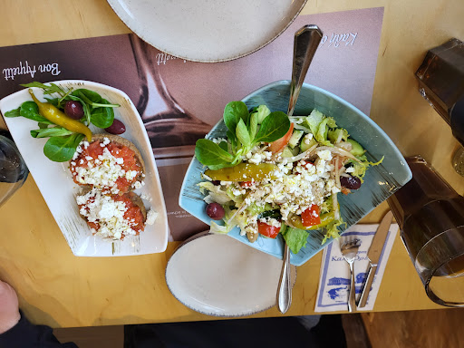 Da alle griechischen Restaurants mit guten Bewertungen die wir im Raum Baden-Baden und Bühl gegoogelt hatten entweder keinen Platz hatten oder geschlossen waren, erinnerten wir uns, dass wir vor ein paar Jahren mal in diesem Restaurant gut gegessen hatten. Also nach Achern gefahren, lag sowieso auf dem Heimweg. Von außen schon sahen wir die sehr kalte Atmosphäre. Dies bestätigte sich als wir ins Restaurant kamen: überall LED Leuchten, keine Kerzen usw - es war eher wie in einem Kaufhaus, nicht wie in einem gemütlichen griechischen Restaurant. Die Einrichtung war größtenteils herunter gekommen, z.B. abgeschossene Polster auf denen nicht weil mehr das Muster zu erkennen war.