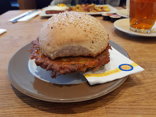 Nette Dame hat nur die Augen verdreht als ich gefragt habe ob das normal ist weil ich hier noch nie so etwas platt gedrücktes und fett durchtrieftes gegessen habe und auch bestimmt noch nicht werde.