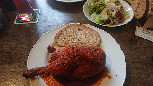 Loved this chicken, and quite unique in the Black Forest. I appreciated that the picture on the website was true to life. The chicken was reminiscent of Nashville hot chicken. I got it extra spicy, which is about medium heat level for American tastes - quite nice for Germany and perfect for me. I accompanied it with two fresh weizenbier (wheat beer) from the tap. Prices very reasonable, though be...