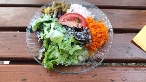 Read moreEin sehr gemütlicher kleiner Gasthof im Grünen- wir haben im Biergarten gegessen, der schon reichlich Beschattung durch die Bäume und Hecken bekam, und durch zahlreiche Sonnenschirme unterstützt wurde. Es gibt keine Speisekarten, sondern die Gerichte stehen mit Kreide auf Tafeln im Eingangsbereich. Wir haben uns für Rumpsteak mit Kräuterbutter und Pommes, Spinatknödel mit Butter und Gegobeltem Parmesan sowie eine große Kinderportion paniertes Schweineschnitzel mit Spätzeln und Soße entschieden. Es hat alles köstlich geschmeckt. Zu den Spinatknödeln wurde ein Beilagensalat serviert, der sehr ausgewogen angemacht war. Zu Beginn empfanden wir die Bedienung als recht kühl, später waren uns die Wirtsleute sehr sympathisch. Wir würden gerne wiederkommen, sollten wir mal wieder in dieser Gegend...