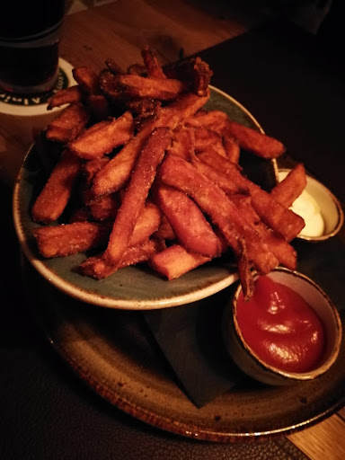 Wir bekamen einen schönen Tisch in dem gemĂŒtlichen Gastraum. Das Restaurant war ungefĂ€hr zur HĂ€lfte gefĂŒllt, wir wurden freundlich empfangen und mussten nicht lange warten bis die GetrĂ€nke aufgenommen und gebracht wurden. Die Kellnerin war sehr freundlich und konnte uns kompetent beraten. Wegen der negativen Bewertungen habe ich auf die Uhr geschaut. Nach 10 min bekam ich die Vorspeise (empfehlenswert: Fingerfood Fritten), nach 30 min wurde unser Hauptgang gebracht. Meiner Meinung ist die Zeit absolut angemessen. Hier wird frisch gekocht, das schmeckt man und das dauert eben etwas.