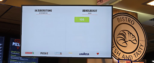 Read moreThe word "client" does not mean anything to these people. You order and pay to a machine like in any fast-food, then you wait until the order moves from "In preparation" to "Ready". When my order 105 appeared on the Ready monitor I asked to some staff where I get the food and was told to wait. Asked again after five minutes, again told to wait. Then after 10 minutes another staff tell me that the food is ready on the side, one meter from her, since 15 minutes... And my espresso also comes.