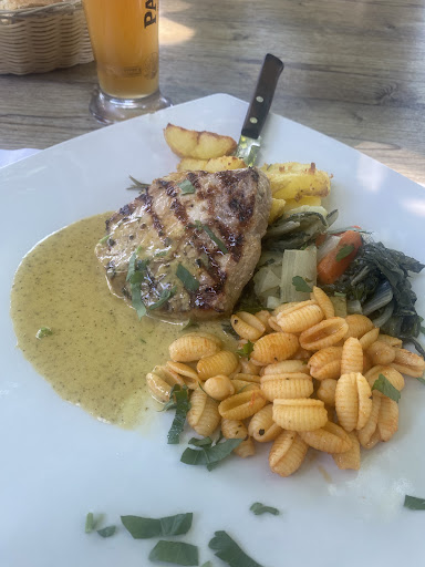 Eigentlich ganz schön bei heißem Wetter draußen zu sitzen unter einem fantastischen Blätterdach. Uns wurden zwei Plätze zugewiesen, wobei ich schon merkte, dass eine gewisse Lustlosigkeit das Servicepersonal umwehte. Wie dem auch sei, wir setzen uns an den zugewiesenen Platz. Leider war der Tisch recht schmutzig und überhaupt nicht abgewischt, was locker 15 Minuten brauchte, bis das passierte. Die Getränkebestellung wurde aber prompt aufgenommen: ein alkoholfreies Weizen und eine Spezi. Die Speisekarte wurde effizient überreicht. Ich blätterte ein wenig darin. Naja bis zur Aufnahme der Bestellung waren es gefühlt 20-25 Minuten: von der Menükarte ein Steak „Café de Paris“ und eine Pizza Halb-Magherita-Halb-Tonno. Die Tonno ohne Kapern und und Zwiebel. Fürs Kind gibt es einen schönen, kleinen Spielplatz. Und laut sein durfte man auch. Das ist tatsächlich positiv. Wir waren immerhin in einem italienischen Restaurant. Nun, das Essen kam nach gut 30-35 Minuten und wir hatten schon kurz nach 13 Uhr. Die Tonno leider mit Kapern und Zwiebeln bedeckt. Ich hatte den Eindruck, dass die Servicekraft den Sonderwunsch nicht verstanden hat, eher nicht verstehen wollte. Naja, meine Tochter hat sich dann bei mir beschwert. Okay: dann habe ich halt die Kapern und die Zwiebeln selbst herunternehmen. Portionen waren ordentlich. Man wird auf jeden Fall satt. Mein Steak „Café de Paris“ sah gut aus - siehe Foto - aber die Soße war nicht gut abgeschmeckt und zu sehr mit Herbes de Provence durchsetzt. Ich hätte da irgendwas auf Tomatenbasis, Béchamel o.ä. erwartet, vielleicht mit etwas Pastis verfeinert. Wirklich schade. Aber immerhin aufgegessen. Zweite Runde an Getränke wiederum sehr effizient und wortkarg vom Servicepersonal aufgenommen. Den Rest der Pizza - um offen zu sein nicht wirklich besonders - haben wir uns aufgrund der beeindruckenden Größe einpacken lassen. An der Stelle blitzte dann tatsächlich ein wenig italienische Gastfreundschaft, Smalltalk und Eingehen auf die Gäste auf. Leider hätte ich das von vornherein erwartet. So fühlten wir uns lange Zeit nur als Platzbesetzer willkommen. Keine Ahnung warum. Die Rechnung kam wiederum prompt, sehr effizient nach dessen Anforderung. 50 Euro inkl. Trinkgeld für einen Erwachsenen und ein Kind. Verabschiedung ebenfalls sehr knapp und effizient. Wir verließen das Lokal kurz nach 14 Uhr. Hmmm, ich weiß nicht, ob mir das so gefällt. Wenn man nur zum Essen kommt: okay! Ich vermute allerdings, dass der Service nicht wirklich gut geführt wird - die schlechte, angespannte Laune war spürbar: es wären locker 4 Sterne plus möglich. Aber so: wirklich sehr faire 3 Sterne, und das ist nicht als schlechte Bewertung zu verstehen.