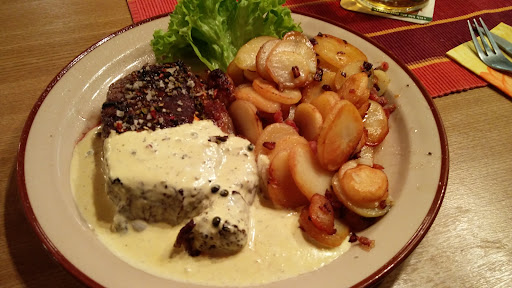 5 Sterne Nachtrag zu unserem 2. Besuch am 06.09.2024: 1 x Rumpsteak mit Bernaise Pfeffersauce-Pommes-Salat 1 x Rumpsteak-frische Champignons-Pommes-Salat