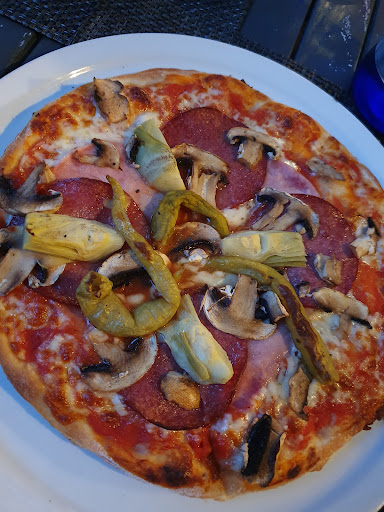 Read moreSchönes Ambiente. Das war aber auch schon alles was man positiv erwähnen kann... Ich hatte eine Pizza mit doppelt Salami und Schinken bestellt. Als ich die Pizza erblickte, fragte ich die Bedienung, ob er vergessen habe, dass ich doppelt Salami bestellt hatte. Die Antwort war, dass der Belag, aus mir nicht erklärlichen Gründen, verrutscht sei. Auf der Pizza befanden sich lediglich 3 Fünf-Mark-Stück große Salami Scheibchen, sowie 3 kleine Schinken Fetzen. Ich kam überhaupt nicht dazu, nochmals beim Kellner nachzuhaken, da er sich bereits wieder in die Küche aufmachte. Auch der Käse war sehr spärlich. Noch dazu gehe ich davon aus, dass es sich um einen Analogkäse handelte. Der Käse hatte in keinster Weise Fäden gezogen. Er ist eher abgerissen, bzw. abgebröckelt... Die Salami war geschmacklich, naja sagen wir ok. Allerdings war der Schinken von einer mittleren bis schlechten Qualität. Für eine mittlere Pizza in 26cm bin ich gerne bereit 8,50 Euro zu bezahlen. Aber für die servierte Pizza ist das absolut überzogen. Auch meine Begleitungen waren sehr von Ihren Pizzen enttäuscht. Hier werden wir sicherlich nicht mehr...