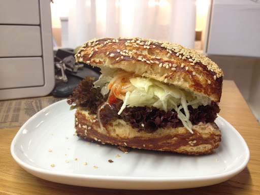 Ein einfaches Fleichpflanzerl schwäbisch "Fleischküchle",in dieser Form zu veredeln schafft wohl nur Einer! Die Bäckerei Butzug besticht nicht nur durch seine hervorragenden Backwaren, sondern auch durch seine besonders guten Kuchen und süßen Stückle. Dieser "Burger" hier besteht aus einem klassischen Fleischküchle, Frischkäse, Krautsalat und süß-scharfer Sauce, umhüllt von einer Dinkel-Laugen Ecke mit...