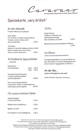 Read moreWaren womöglich die Ersten, die das Restaurant ohne vorigen Museumsbesuch angefahren haben. Haben das Caravano bei unserem Tagestrip nach Ravensburg eher zufällig im Rahmen einer Google-Maps-Empfehlung entdeckt. Das eher kleinere Restaurant gehört zum Erwin Hymer Museum (habe den Namen entsprechend ergänzt), kann aber auch ohne Probleme ohne vorige Museumsbesichtigung besucht werden. Für Durchreisende insofern interessant, da durchgehend, d.h. auch nach 14:00 Uhr noch gegessen werden kann. Die verschiedene Speisen sind nach Länder und Regionen aufgeteilt z.B. “In die Berge“ oder “Nach Italien“ und bewegen sich im Schnitt zwischen 8,90 EUR und 10,80 EUR. In Anlehnung an das Museum ist es schön, dass das Thema Urlaub auch auf der Speisekarte aufgegriffen wird. Wir konnten noch einen freien Tisch ergattern, da die anderen alle reserviert waren (falls dies öfters der Fall sein sollte, müsste man noch einen Stern abziehen). Service war freundlich, mussten jedoch ca. 25 min auf unser Essen warten (lag aber eher daran, dass es etwas gedauert hat, bis das Essen bei uns aufgenommen wurde). Dir hat diese Rezession gefallen? Dann freue ich mich über dein...