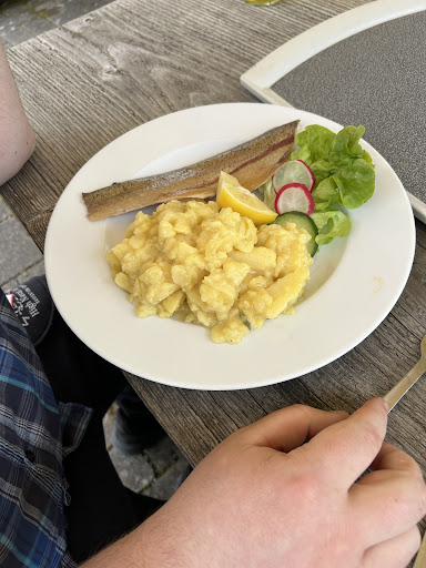 Read moreМы были в субботний день, днём. В основном зале ресторана праздновали свадьбу. Нам предложили столик на улице. Приятную атмосферу омрачало то,что гости свадьбы выходили курить большим количеством людей, дым сигарет был очень неприятен. Обслуживание хорошее, официанты приветливы и вежливы. Еда была вкусная, порции хорошие. 4 балла ставлю за hausgemachte Limonade: это просто вода со льдом и сиропом (ветка мяты и безвкусная клубника для декора). В целом, мы плотно поели и приятно провели время в...