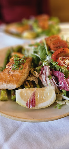 Vorspeisen wie Ziegenkäse kommt kalt und wird auf normalem Rucola serviert. Hier könnte ein bisschen Gemüse wie Kürbis, rote Beete, Beeren oder etwa ein Chutney das Gericht aufpeppen. Mein Lachs vom Grill war gut, obwohl ich keinen Unterschied zur Zubereitung in der Pfanne erkennen konnte (hätte mehr Röstaromen erwartet), jedoch bekomm ich das Essen auch zu Hause genauso gut hin.