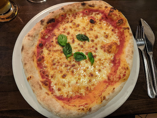 International pizza, well pizza in Germany. This one comes in at a solid 4 out of 5, cheese is a good effort with a decent flavour and a good amount of stretch but sadly lacks a good amount of charring. The tomato is a fair effort with a good consistency, not too wet. The dough is a good one, nice flavour and a reasonable chew to it, but having a good crispness to it, the biggest issue I have is again lack of charring, maybe it's just me, but I like that slight hint of burnt, a light patchwork of colour to the top and underside. The service is excellent and they have a good selection of beers, including...