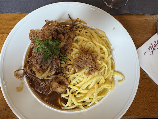 Read moreSehr schönes Restaurant mitten in Neipperg in einem hübschen Fachwerkhaus, das einst als Schul- und Rathaus diente. Der Restaurantbereich ist über 3 Stockwerke verteilt, dennoch sehr gemütliches, heimeliges Ambiente, aber kein unnötiges Chi-Chi. Wir waren 4 Erwachsene, hatten reserviert und wurde sehr freundlich in einen kleinen, urigen Gewölbekeller an einem 6er-Tisch platziert: dieser bietet Platz für ca. 10 Personen und eignet sich so für kleinere Feiern oder Treffen hervorragend, da man unter sich bleiben kann. Das Essen war hervorragend, der Service sehr freundlich & zuvorkommend: wir aßen die Ochsenbäckchen mit Marktgemüse & Kartoffelgratin, Flämmle Leibgericht und 2x Tandoori-Hähnchen. Alles war sehr gut zubereitet, reichlich und sehr lecker, ebenso wie die anschließenden Espressi & Kaffees. Leider passten die anvisierten Apfelringe dann doch nicht mehr hinein, sodass wir diese auf einen weiteren Besuch vertagen mussten 😉 Erwähnenswert ist zusätzlich, dass es die Produkte alle aus der Region kommen, deren Lieferanten/Erzeuger auch auf der Speisekarte nachzulesen sind. Ein wirklich gelungenes Mittagessen in schöner Atmosphäre und mit zuvorkommenden Gastgebern - wir kommen sicher wieder und ich kann Zinsers Flämmle wärmstens...