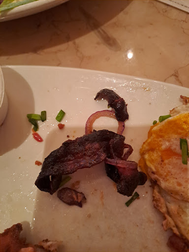 Weitere 5 minuten später, endlich angekommen und die Bestellung aufgegeben nachdem ungeschukltes Personal den Tisch so lieblos abwischte, dass die Krümel der vorangegangenen Gäste auf unserem schoß landete, dann das selbe spiel wie vor Corona. Ich hatte ja Hoffnung, dass in diesen 2 Jahren seit meinem letzten Besuch das Personal aufgestockt oder geschult wurde oder sich am Konzept etwas geändert hätte, aber weit fehl geschlagen. Gleiche Problematik wie immer. Wir haben noch nichtmal etwas geholt, hörten wir schon am nachbartisch an was es gerade alles fehlt am Buffet und so war es dann auch. Ein Kellner sagte am nachbartisch dann noch dass echt viel los sei heute und dann auch noch ein kollege spontan krank gemacht hat. Ganz ehrlich, erstens ist das eine Unterstellung gegen den Kollegen ud zweitens wären für einen guten und reibungslosen Service eher 3-4 Kräfte von nöten gewesen.