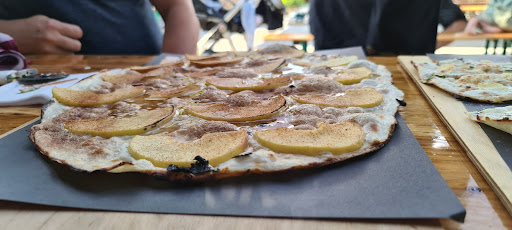 Wir sind alle hell auf begeistert von der grossen Auswahl der Flammmkuchen. Egal ob Süß oder deftig, für jeden Geschmack ist was dabei! Es ist jedes Mal ein Erlebnis für die Sinne. Ganz toll ist, dass es zwar eine feste Karte gibt, aber immer wieder nebenbei neue Sorten angeboten werden. So ist jeder Besuch nie wie jeder andere. Wir haben schon viele Sorten ausprobiert und es gab nie einen, der uns nicht geschmeckt hat. Ein ganz großes Lob an die Küche!!! Aber auch die selbstgemachten Limonaden sind nicht wie überall. Sie haben Geschmäcker wie Kirsch-Limette, Erdbeer-Limette, Waldmeister usw. Der Melonenschnapps und Jägermeister , wie bestimmt auch alle anderen Schnäppse werden in gefrorenen Gläsern serviert. Einfach ein ganz anderes Geschmackserlebnis. Zu warme Getränke sind hier definitiv nicht zu erwarten!!!