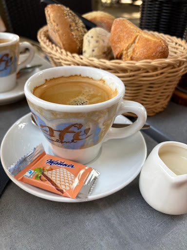 Meine Frau und ich waren am Sonntag mit Freunden dort Frühstücken. Die Reservierung zuvor Online hat super geklappt. Wir hatten einen schönen Tisch. Atmosphäre ist sehr gemütlich. Das Personal ist super nett. Nachdem wir bestellt haben kamen auch schon sehr zügig die bestellen Getränken (Kaffeespezialitäten & Tee). Gleich darauf Folgte auch das bestellte Frühstück. Auf Wünsche bei der Bestellung wurde auch eingegangen wie z.b dass meine Frau und ich keinen Sekt wollten dafür etwas mehr O-Saft. Wir teilten uns das romantische Frühstück für zwei unsere Freunde hatten zu einem das Käse Frühstück und das Genießer Frühstück. Die Platten waren mehr als reichhaltig belegt und zu dem sehr schön angerichtet. Der O-Saft war frisch gepresst und die Heiß Getränke machen dem Namen alle Ehre. Im ganzen war es ein wunderschöner Sonntag morgen und eins der besten a la Carte Frühstücks die ich bisher hatte. Nochmal Danke an das nette Personal wir kommen...