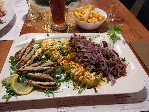 Das Essen: eines Griechen nicht würdig! Ich weiß gar nicht wie ich es beschreiben soll. Gegrillte Peperoni mit einer Soße oder Pampe und drei Scheibchen Weißbrot. Fleisch war alles außer gegrillt. Gyros null Geschmack. Salat naja. Nur das Tzatziki und die Pommes waren OKAY!
