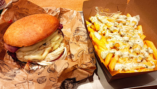 A warm atmosphere where you can have tasty burgers with high quality meat.