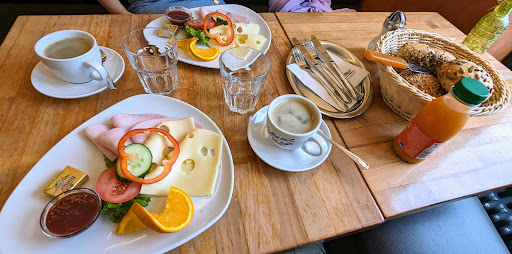 Vor einer Tagestour sind wir zum Frühstücken in die Bäckerei Café Ulmer gefahren. Wir hatten uns vorab online über ein Frühstücksangebot in der Umgebung informiert. Auf der Webseite von der Firma Ulmer bekommt man etwas detailliertere Informationen. Die Begrüßung war sehr freundlich und das Frühstück innerhalb weniger Minuten vorbereitet und sogar an den Tisch gebracht. Wir haben uns für die Klassik Variante entschieden und einen Saft dazugenommen. Vorab konnte man sich 2 Brötchen aussuchen, die Auswahlmöglichkeiten waren gut und die ausgewählten Varianten sehr lecker. Es gibt auch eine gute Auswahl mit bereits belegten Brötchen. Parken kann man direkt vor der Bäckerei für die Dauer des Besuchs. Waren vom Vortag können für den halben Preis erworben werden. Dafür ein großes Lob, so sieht nachhaltiges Handeln aus. Klare Empfehlung von...