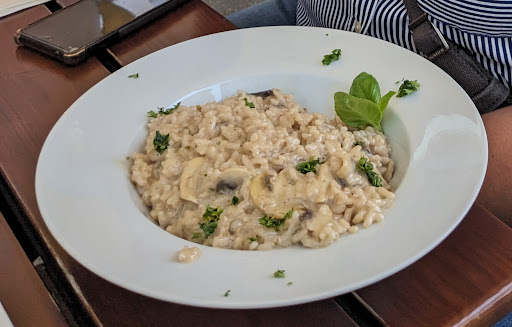 The people were very friendly, the food was delicious, and the prices were reasonable. Whenever I see risotto on a menu I have to get it. The mushroom risotto here was delicious, creamy, and the rice was nice and firm. The flavor was delicate and the mushroom was tasty. We also tried the pork with white wine and fries. The lemon and white wine was a perfect pairing and complemented the pork wonderfully. I would highly recommend trying this restaurant when you're in...