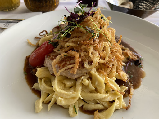 Upgrading my review. Took a chance and ate a second time and we had a different server. Excellent service and again the food was excellent. We vacationed all across Switzerland for a week and stayed and ate at six different places in Friedrichshafen for over a week. My wife and I felt that the Kommodore had the best food out of all the places we ate at. Highly recommend this restaurant.