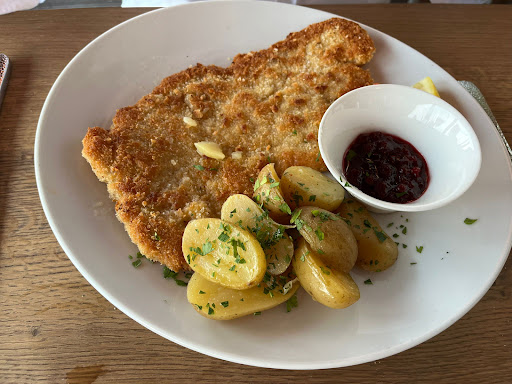 Das Essen durchwachsen: Spätzle sehr fad, die Kalbsschnitzel beim Wiener Schnitzel nicht richtig (Vermutung kaltes ÖL) frittiert, nur un-essbare Fett-Klumpen. (Hierfür wurde kostenloser Ersatz angeboten, den wir zeitlich nicht wahrnehmen wollten). Das Risotto war ebenfalls geschmackslos. Der Nachtisch Mille-Feuille war zu durchgezogen. Positiv wiederum waren die Schweinebäckchen und die Mousse au chocolat.