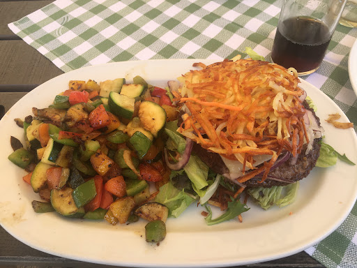 Read some good things about this restaurant and decided to take the ferry over for my birthday brunch. We arrived early for a Sunday morning (just after 9) and were surprised to see that all the tables by the water were reserved. This surprised us because the website clearly states that no reservations can be made for outdoor seating ("Leider können wir keine Reservierungen für unseren Biergarten entgegennehmen"). If this hadn't been written so clearly, obviously we would have called and made a reservation- this seemed a little unfair. But we got a nice spot in the shade and were happy - until our server arrived. I am usually more diplomatic in my language but there is no diplomatic way of putting this. The server stinked. He smelled so bad that my appetite was gone quickly and we smelled him every time he passed or approached our table. All three of us preferred not to order a second round of coffeeso as not to have him come near to our table. I am extremely perplexed how this can happen in a gastronomic business. Unfortunately the breakfast buffet was not great to begin with (not appetizing in it's appearance, acceptable amount of selection, platters left almost empty by the staff, tomato-mozzarella salad without any seasoning, tomatoes were watery and had no taste, ...). Also missed having soy milk/similar option for people with allergies/intolerance - I appreciate that most cafes in Germany have this option! I do not write reviews for many places - mostly when I was very pleased or very disappointed- in this case I am shocked! The servers scent made the entire restaurant feel highly...