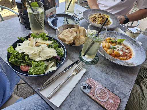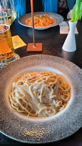 Read moreEinrichtung geschmackvoll, recht nett. Ambiente geht so, recht kühl und insbesondere sehr laut ... dürfte den rundum liegenden Fensterfronten geschuldet sein da diese völlig frei sind und (andres als im Vorgängerrest.) keinerlei Stoffaplikationen haben; Platzarrangement ist auf "maximale" Flächennutzung optimiert. Service hat noch "Verbesserungspotential", Parmesan zu Spagetti muss extra gefordert werden, Teller abräumen wenn der andere Gast am Tisch noch nicht mit Essen fertig ist geht garnicht! Essen geht so (ist teilweise schlechter als in anderen Lokalen der Kette), hatten Spagetti mit "Meeresfrüchten" (waren hart ... unmöglich) und als "Carbonara" (war primär eine Sahnesoße mit Geschmack [welcher bloß], Speckstückchen hab' ich wohl vier Stück gefunden). Preise (und Karte) sind wie in den anderen (ca. 14) Lokalen des Besitzers ... Es ist definitiv nicht "der Italiener des Vertrauens" wo man hingeht um einen gelungenen Abend mit italienischer Küche und Lifestyle zu genießen ... ist eher was für den "eiligen Touristen" a.d. Weg vom Parkhaus in die Innenstadt oder auf die Uferpromenade ... Schade, denn die Lage ist wieder mal super (wie schon 25 Jahre lag als...