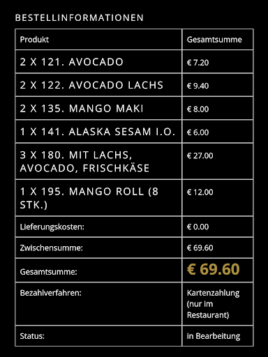 Beim Hauptgericht war es ähnlich: die große Sushi-Platte für 4 Personen kam nach angemessener Wartezeit. Das warme Gericht, auf das unser Freund, der eben kein Sushi mag, gewartet hat, kam erst 30 Minuten und 2 Nachfragen später. Wir waren quasi mit der Platte fertig, als er angefangen hat und das geht einfach gar nicht.