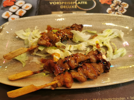 Read moreWaren sehr enttäuscht. Waren als Gruppe von 5 Personen dort einen Tag vor Silvester Abends zu essen. Service: Es dauert vorneweg 10 Minuten bis die Speisekarten gereicht wurden. Die Vorspeisen kamen zu unterschiedlich Zeitpunkten, so dass getrennt gegessen wurde. Wir verbrachten insgesamt mehr als 2,5 Stunden dort, eine davon alleine mit warten auf die letzte Sushiplatte, nach dem alle anderen Hauptspeisen schon abgeräumt waren. Als Entschuldigung für die Verspätung gab es 20 Prozent für den Wartenden. Meiner Meinung nach der falsche Ansatz, dafür dass die Stunden davor sich nicht bemüht worden war. Irgendwie hat das Servicepersonal gemerkt, dass es nicht ganz läuft, so wurde also immer jemand anderst zu uns geschickt, auch in sehr weiten Abständene, was einen dazu verleitet sein Getränk langsam zu trinken. Man weiß schließlich nicht wann es wieder Nachschub gibt! Auch ist das Personal unfähig zum einen ihrer Bestellsystem zu bedienen (welches bei guter Pflege, Fehler nahezu ausschließt) zum anderen auch nicht dazu bereit ist sich für die lange Wartezeit zu entschuldigen. Einrichtung: Wenn man das Restaurant betritt ist man echt beeindruckt, sehr schön und mit Stil eingerichtet. Die Karten sind gut gemacht und der Tisch passend dekoriert. Nur die nicht abschließbaren Toiletten lassen zu wünschen übrig. Essen: Das Sushi war super angerichtet, nur war's das auch schon. Reis und Noriblätter schmeckten alt und trocken. Das konnte nicht mal der frische Tunfisch retten. Andrer Gerichtet (Suppe und Vegitarisches Reisgericht) konnten durchaus überzeugen. Preise: Leider alles überteuert und das Ergebniss nicht wert. Gibt es besseres in Friedrichshafen zu günstigeren Preisen.