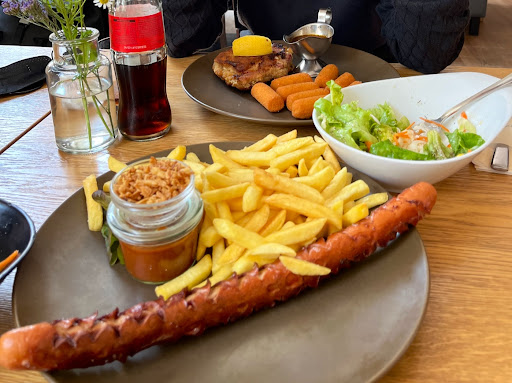Read moreWe ordered the currywurst, cream of garlic soup, the Cordon bleu, one lemonade and one coke (40 euros). The server was easy to communicate with. The soup was great but the cordon bleu was on the salty side. Servings were huge for us. Glad to have found this place for a late lunch...