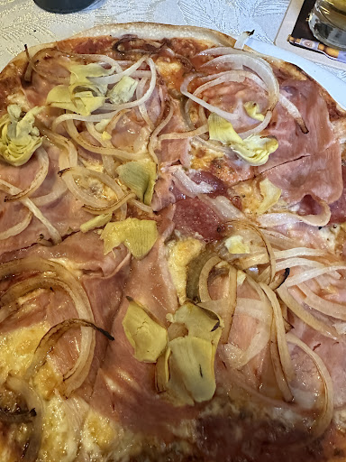 Pizza 🍕 hat nicht geschmeckt. Die Soße auf dem Teig war übersäuert. Auch sonst recht verbrannt und nicht besonders schmackhaft. Ambiente war eher durchwachsen - ich habe Stil und einen USP vermisst. Service war sehr freundlich, aber doch nicht so schnell oder aufmerksam. Parkplätze vor der Tür vorhanden. Durch die Treppen ins Restaurant und auf die Toilette nicht behinderten gerecht.