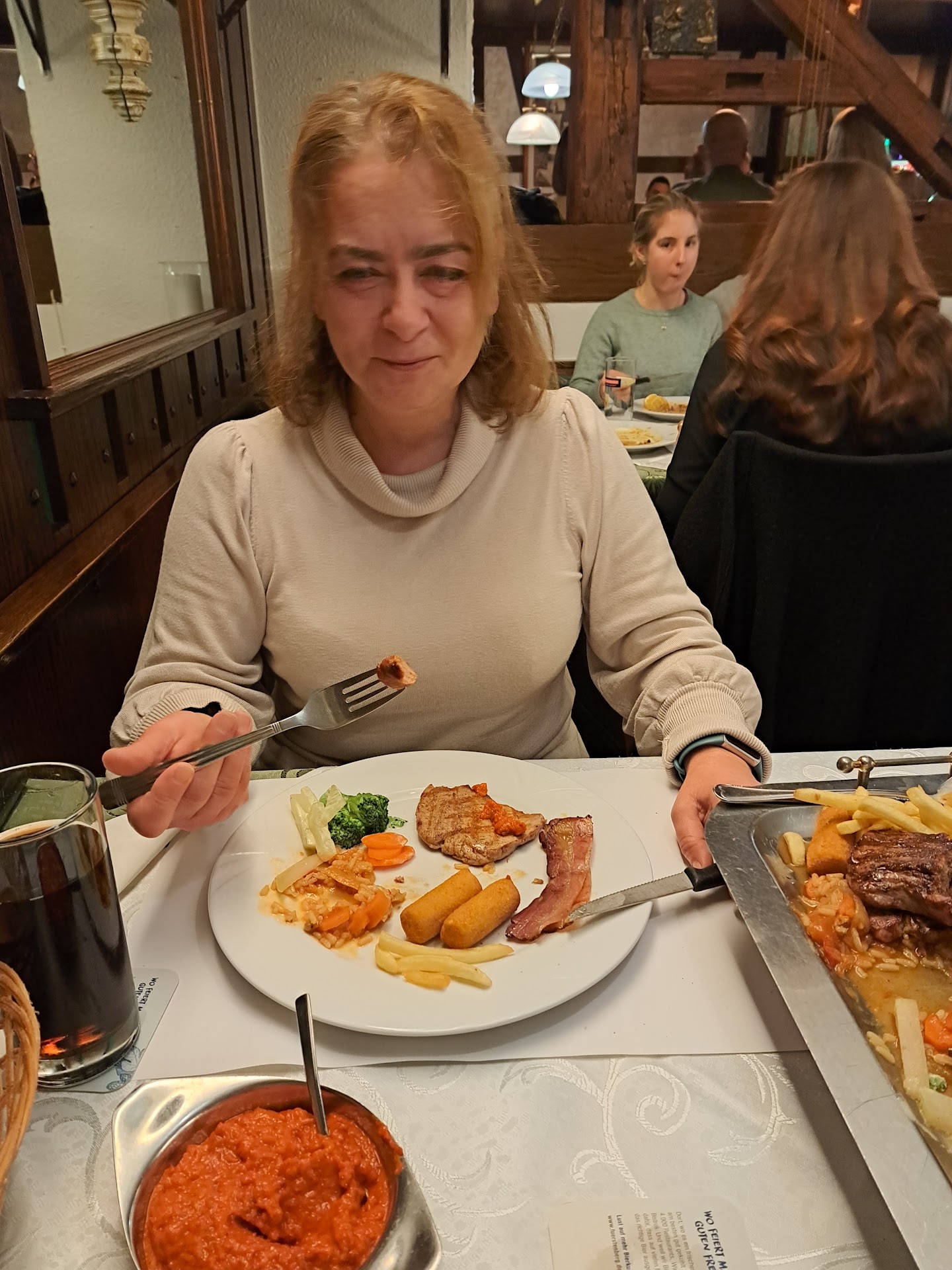 Read moreWaren enttäuscht. Haben erst 15 min. auf die Karte warten müssen. Dann wurde ohne Aufforderung einfach Wasser als Trinken auf den tisch gestellt. Als wir endlich bestellen durften, bestellten die meisten Cola, darauf hin wurden wieder Flaschen hingestellt. Essen hatte die Bedienung aufgenommen. Bestellt wurde ein Rumpsteak das leider verbrannt geschmeckt hatte. Wir wiesen den Chef darauf hin, dass es so nicht genießbar ist. Mit Kritik kann er nicht umgehen, denn auf die Reklamation wurde nur diskutiert das dass Fleisch von Qualität sei. Das wurde von uns auch nicht bestritten. Lange Rede kurzer Sinn. Nach 5 min Diskussion wurde der Teller mit genommen und ausgetauscht. Keine Entschuldigung oder eine kleine Wiedergutmachung wurde uns vom Chef angeboten. Unser Fazit, unfreundlichen Personal, Tot gebratenes Fleisch, Preis Leistung ist nicht zu empfehlen. Wir kommen nicht mehr!