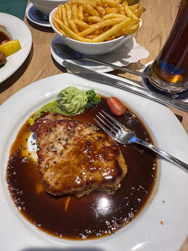 Great food my family and I each ordered something from the AUS OMAS KÜCHE section as these are the specialties. My boiled beef in horseradish cream sauce was so good I loved it. My sister tried the tripe, my mom the beef tongue and my dad some pork with spätzle. Everything was perfect as was the french onion soup. Our waitress was also very sweet. Definitely a nice stop if you’re in the area with food you will not be...