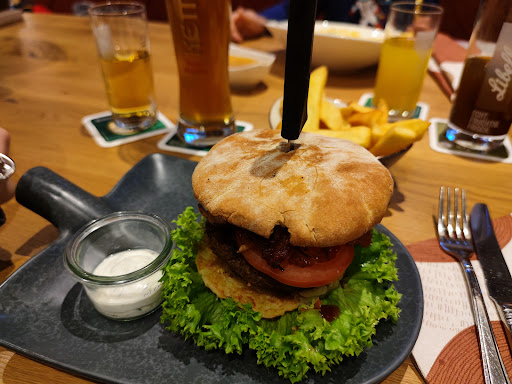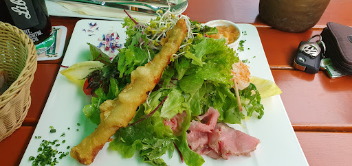 Read moreStaff is friendly, tables are clean, nicely situated with decent parking. Waited for almost an hour for food. We had the Feinschmeckersalat; It came with slimey pieces of lettuce, an overcooked very small piece of venison, one very pale slice of roast beef torn into three pieces. Three skewered shrimp which were pretty good. The tempura asparagus in bacon is one single asparagus, deep-fried in a very greasy batter. The ziegenkase-bratapfeltorte was in fact, not a torte, but a sweet, goat-esque cream with a few bits of cooked apple on top in a small ramekin. Underneath the pile of salad, there was some potato salad, and vegetables salads, such as carrot. Potato salad was good, dressing on the salad was nice. Everything else was a combination of mild to moderate dissappointments. The salad was returned and the servers were very nice about it. The other dish that was had was the Esszeit-Burger, of which the rather large burger patty had the consistency of somewhat dry meatloaf - taste wise it was unremarkable at best. The bun was very dry and "rustic". Fries were pretty good! We ended up paying just over 26,- for the burger...