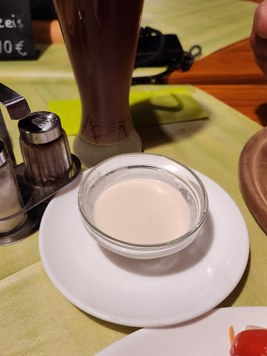 Read moreWir trafen nach 20:00 Uhr ein und man erklärte uns als Erstes, dass es nur noch Salate, Flammkuchen und Pizza gibt. Auf Rückfrage wurde uns mitgeteilt, dass Pizzen und Flammkuchen TK-Ware sei. Bestellt haben wir dann eine Kortoffelsuppe und einen Chef-Salat. Die Suppe kam schließlich aufgewärmt aus der Dose und der Salat fertig aus der Tüte mit einem Fertigdressing aus der Flasche in einer separaten Schale. Ergänzt wurde der Fertigsalat mit ein paar Scheiben Brie und Schinken und geschälten bunten Brotzeiteiern. Resumee: Fertig-Speisen und eher...