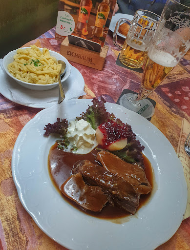 Leider enttäuscht, nachdem ich so viel gutes gehört habe... Wir waren als Gruppe zur Geburtstagsfeier dort. Der Service war im großen und ganzen freundlich und schnell. Ich hatte mir ein "Schnitzel Wiener Art" mit Pommes bestellt und bekommen hab ich im Prinzip paniertes Schweinesteak !!! Auf Nachfrage in der Küche, warum die Schnitzel nicht geklopft seine, kam nur die Antwort: "Wir machen Schnitzel nunmal so" Leute, ein paniertes Schweinesteak ist KEIN Schnitzel, sondern einfach nur ein paniertes Schweinesteak !!! Die Meinungen über das Essen gingen an diesem Abend weit auseinander, von gut bis große Enttäuschung. Was ich öfter gehört hab, das auch die Spätzle ziemlich fad gewesen seien, die Filetstücke zäh usw ... und bevor ich es vergesse, die Beilagensalate die an unsren Tisch kamen waren unterschiedlich angerichtet, mir zum Beispiel fehlte der Kartoffelsalat, im Vergleich zu meiner Freundin, sie hatte welchen... Mein Fazit Das Essen war nicht wirklich schlecht aber "vom Hocker gerissen" hat es...