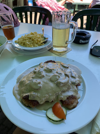Große, günstige und leckere Portionen. Wenn das Lokal voll ist, wartet man auch schon mal 20-30 Min. bis zur Aufnahme der Bestellung und mind. 30 Min. bis das Essen serviert wird. Bei uns waren es heute insgesamt 70 Min.Wartezeit. Die Auswahl der Speisen ist recht begrenzt, wer sich aber auf Schnitzel einlässt wird nicht enttäuscht werden. Als Vegetarier ist die Auswahl auf gegrillten Schafskäse, Salat und Käsespätzle beschränkt, was aber auch alles lecker schmeckt. Die Atmosphäre wirkt eher rustikal/altbacken und es ist recht laut, wenn die Gaststätte voll ist. Der direkt angegliederte kleine Tierpark und der einfache Spielplatz verkürzen bei gutem Wetter zumindest für die Kleinsten die Wartezeit auf's Essen erheblich. Wir kommen jederzeit immer wieder...